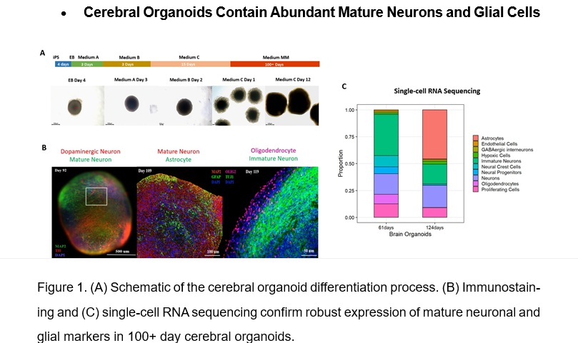 Tauタンパク質の凝集と拡散は、アルツハイマー病(AD)をはじめとするタウオパチーの重要な指標です。従来の2D細胞モデルや動物モデルでは、ヒト脳病態を模倣するには限界があります。本研究では、Tau pre-formed fibrils (PFFs)とiPSC由来脳オルガノイドを組み合わせることで、ヒト化in vitroモデルを開発しました。その結果、100日以上成熟したオルガノイドは、神経細胞とグリア細胞の組成を示すことが示されました。Tau PFF処理により、Tauの過リン酸化、細胞アポトーシス、アストロサイトの活性化、そして炎症を引き起こされます。さらに、酸化ストレスが増加し、神経細胞損傷に寄与します。このモデルはAD関連病態を精密に再現し、Tauの経路を研究し、潜在的な治療法を検証するためのプラットフォームを提供します。