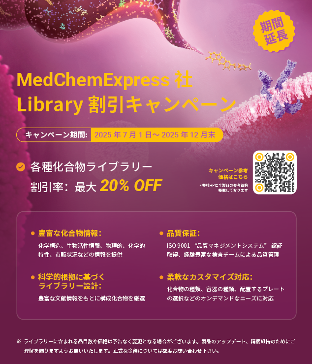 薬理活性化合物の提供に定評のあるMedChemExpress(MCE)社のライブラリです。